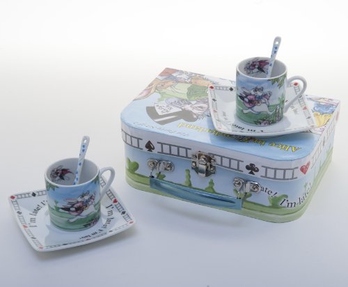 Don't be late to a very important date! It's an Alice in Wonderland Tea Party event. This beautiful set fashions "Paul Cardew's" design himself. Paul uses detailed drawing along with bright, vivid colors to capture the true ambiance of the most famous Tea Party of our time. Get your complete set and plan your very own Tea Party today. So, don't be late!!Cheap "Alice In Wonderland Tea Set for Two 3oz Cups, Saucers and Spoons" Discount Review Shop