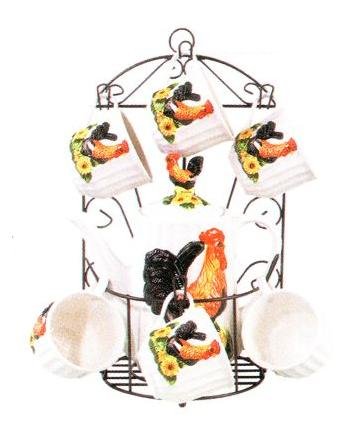 "ROOSTER 9pc TEA Set Pot & Cups w/Iron Rack NEW!" Feature
