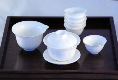 - The three-piece gaiwan is used to brew the tea; The fairness pitcher receives several brews from the gaiwan to produce a "fair mixture"; and the six tea cups are small to promote quick cooling of the tea.