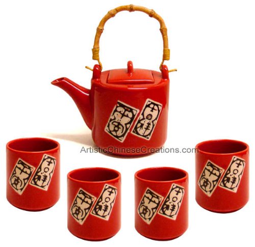 Chinese Porcelain Tea Set - Auspiciousness, Prosperity, Peace: This beautiful Chinese porcelain tea set is decorated with traditional Chinese symbols: Auspiciousness, Prosperity, Peace.This Chinese porcelain tea set includes 1 teapot and four teacups.Cheap "Chinese Home Decor / Chinese Gifts - Chinese Tea Set: Chinese Porcelain Tea Set - Auspiciousness, Prosperity, Peace" Discount Review Shop